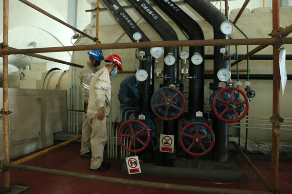 攻堅克難,保機(jī)組穩(wěn)定運(yùn)行。大鵬之動,非一羽之輕也;騏驥之速,非一足之力也。盛夏的廠房內(nèi)異常悶熱,機(jī)組設(shè)備發(fā)出來的熱量讓人喘不過氣來,就在這種條件下,該廠干部職工為了快速消除缺陷,不懼困難,連續(xù)奮戰(zhàn)在現(xiàn)場??偣こ處煻诖蠹易⒁獍踩?,輪換休息,防止中暑,并協(xié)調(diào)解決工器具及材料,查看作業(yè)環(huán)境,檢查安全措施;設(shè)備部積極與哈爾濱電機(jī)廠取得聯(lián)系,請專業(yè)人員入廠探討解決方法,同時編制安全技術(shù)組織措施方案,解決設(shè)備作業(yè)過程中遇到的技術(shù)性問題,對設(shè)備作業(yè)過程中出現(xiàn)的質(zhì)量問題提出整改意見;安監(jiān)部強(qiáng)化監(jiān)督,從兩票控制措施執(zhí)行、腳手架及現(xiàn)場防爆行燈漏電保護(hù)器的使用情況到確認(rèn)施工現(xiàn)場氫氣含量等無死角的全程檢查盯守,為消缺工作保駕護(hù)航;發(fā)電部運(yùn)行人員全力配合,嚴(yán)格按照工作票所列危險點(diǎn)布置安全措施,開關(guān)閥門,在檢修期間密切監(jiān)視發(fā)電機(jī)風(fēng)溫,發(fā)現(xiàn)問題及時對參數(shù)進(jìn)行調(diào)整,在保證機(jī)組安全運(yùn)行的基礎(chǔ)上,為消缺工作創(chuàng)造便利條件;電氣車間電機(jī)班人員分解氫冷器冷卻水出、入口法蘭短接及彎頭,在氫冷器冷卻水入口法蘭處加裝堵板,把配制好的藥液從氫冷器冷卻水出口彎頭處注滿氫冷器。工作中大家分工明確,忙而不亂,盡管現(xiàn)場氣溫高,卻沒有阻擋大家的干勁。