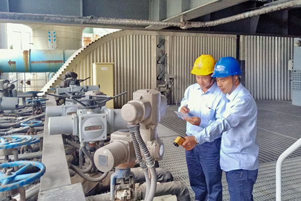 圖為該公司點(diǎn)檢人員正在進(jìn)行6號(hào)鍋爐閥門(mén)內(nèi)漏情況排查