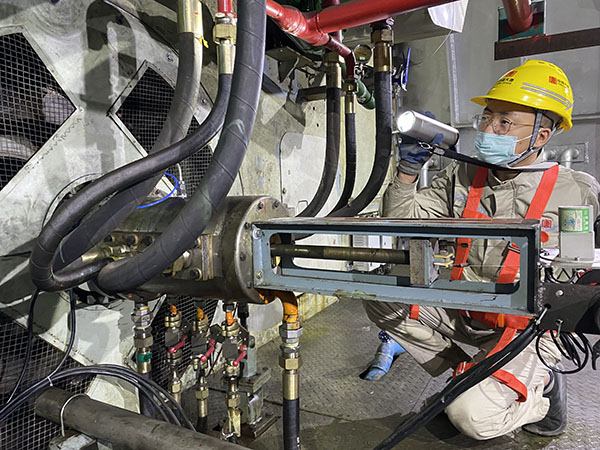 一線職工檢查機(jī)組集電環(huán)及碳刷情況