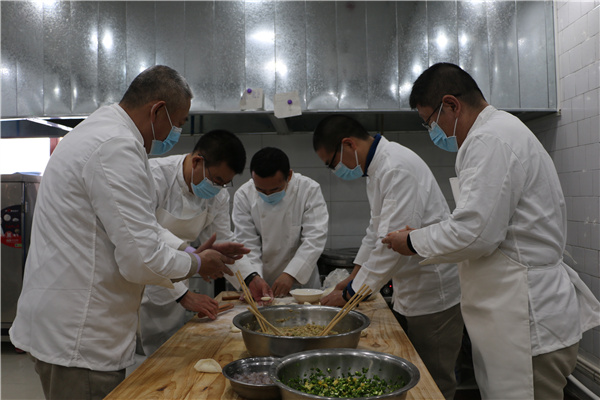 現(xiàn)場慰問結(jié)束后,廠領(lǐng)導(dǎo)們來到職工餐廳,同餐廳值班人員一起為在崗職工包起了餃子,他們還將一些水果糖也包到餃子里,祝愿職工在新的一年里生活更加甜蜜和幸福。