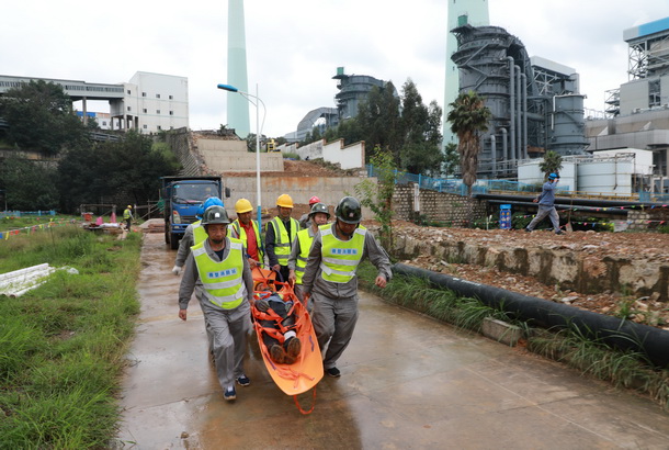 演練在該公司北廠區(qū)路邊山坡冷卻塔周邊正在施工的的五號擋墻展開,因為修補循環(huán)水施工,該處山體裸露,坡體較高。災情設定為因多日降雨造成路邊山坡發(fā)生山體滑坡泥石流災害,一人受傷,情況十分危急。演練按照發(fā)現(xiàn)險情、疏散轉移、搶險救援、醫(yī)療救治4個環(huán)節(jié)進行,每個環(huán)節(jié)銜接緊密,應急反應快速到位,緊急救援有條不紊,人員撤離井然有序,演練人員緊密配合,現(xiàn)場緊張有序,圓滿完成了演練任務。