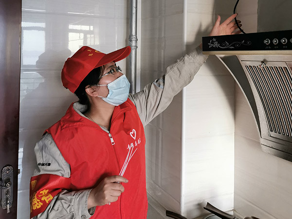 團(tuán)員青年檢查居民家中用電線路情況