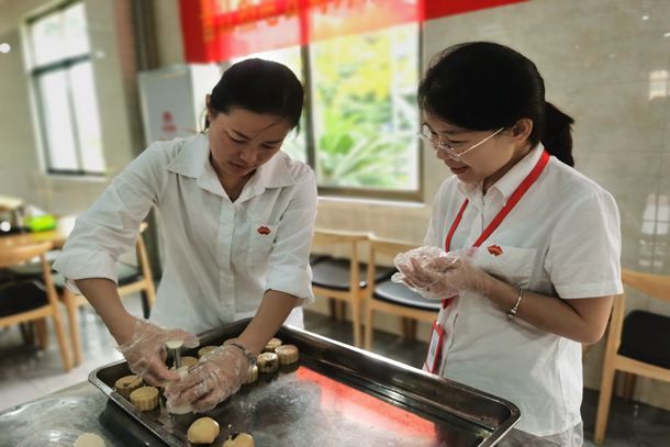 活動當(dāng)天,該公司工會工作人員早早準(zhǔn)備了制作月餅?zāi)>呒梆W料等,大家圍在一起,忙的不亦樂乎,稱重量、分餡料、壓模型......雖然大家都是“新手”但在有經(jīng)驗(yàn)的“師傅”指導(dǎo)下,每一步都做得格外用心,大家邊做月餅,邊相互探討著做法。