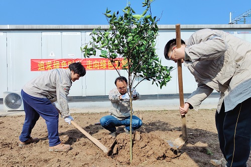 中國電力網(wǎng)訊 “一日之計在于晨,一年之計在于春。”在這播撒希望的春天里,大唐湖南新能源公司新港光伏電站分工會組織全體同志,踐行綠色環(huán)保生態(tài)理念,乘著3月12日植樹節(jié)之風,積極開展“追求綠色時尚 走向綠色文明”主題植樹活動,為該電站增添一抹綠色,一片生機。