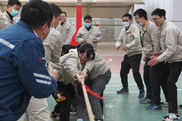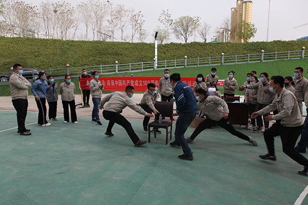 活動由《五人六足跑》《合作共贏》《黨史知識我知道》《紅歌接力》《拔河大賽》等5個項目組成。在《五人六足跑》《合作共贏》項目中,將各參賽隊員的默契表現(xiàn)展現(xiàn)的淋漓盡致,他們齊心協(xié)力、團(tuán)結(jié)一致,充分展示了廣大職工充滿活力、拼搏向上的精神面貌?!饵h史知識我知道》《紅歌接力》項目將整場活動推向高潮,尤為突出的是廣大職工掌握黨史知識的扎實(shí)度,每遇一題,各參賽隊反應(yīng)迅速,競相展開黨史知識作答,正確率高、回答速度快,比賽中難分伯仲。在《拔河大賽》項目中,各隊都顯示出最強(qiáng)的比賽陣容,只見隊員們緊握長繩,卯足了勁拼命往后拉,哨子聲、吶喊聲此起彼伏,現(xiàn)場氣氛異常激烈。