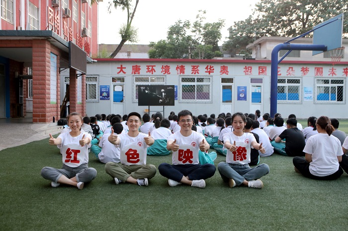 紅色觀影感懷。大唐環(huán)境為華奧學(xué)校捐贈(zèng)影音播放器材,由該公司志愿者組建“紅色映像”放映隊(duì),精選《小兵張嘎》《地道戰(zhàn)》等經(jīng)典紅色電影,課后傍晚在學(xué)校的操場(chǎng)上,為在校住宿的學(xué)生播放露天電影。在觀影現(xiàn)場(chǎng),學(xué)生們?nèi)褙炞ⅰ⒛坎晦D(zhuǎn)睛地看著大屏幕,時(shí)而嚴(yán)肅緊張,時(shí)而默默落淚,深深被電影中跌宕起伏的英雄故事所震撼和吸引。放映結(jié)束后,孩子們對(duì)電影情節(jié)展開(kāi)了熱烈地討論,在感受露天觀影快樂(lè)的同時(shí),將愛(ài)黨愛(ài)國(guó)教育的種子深深植入孩子們心田,他們紛紛表示,要珍惜來(lái)之不易的美好生活,更加努力學(xué)習(xí),回報(bào)祖國(guó)、回報(bào)社會(huì)。
