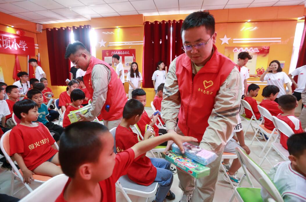 活動(dòng)中,志愿者向小朋友們播放了百集微紀(jì)錄片《信物百年》第43集《渡江戰(zhàn)役第一船“京電輪”》,一起了解在大唐集團(tuán)澎湃發(fā)展歷程背后有著“渡江第一船”之稱的英雄船——“京電輪”的故事,引導(dǎo)他們傳承紅色信仰,堅(jiān)定理想信念。在電力安全課上,為讓深?yuàn)W難懂的火電廠生產(chǎn)流程及環(huán)保工藝變得更易于理解,志愿者們通過精美PPT和現(xiàn)場(chǎng)設(shè)備實(shí)體畫面相結(jié)合的形式將火電廠生產(chǎn)流程及環(huán)保工藝進(jìn)行呈現(xiàn),用實(shí)驗(yàn)與講課相結(jié)合的方式讓電路變得具象而生動(dòng)。答題環(huán)節(jié)中,小朋友們踴躍舉手,將自己剛學(xué)習(xí)理解的電路知識(shí)說出來,加強(qiáng)了學(xué)生們對(duì)于電力生產(chǎn)知識(shí)及安全用電知識(shí)的了解。此外,志愿者們還精心準(zhǔn)備學(xué)習(xí)用品,鼓勵(lì)同學(xué)們努力學(xué)習(xí),天天向上。