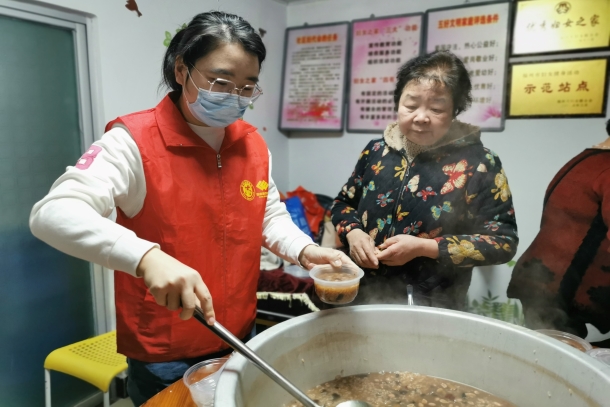 送粥活動(dòng)伴著《福氣要來(lái)到》《親情頌》《幸??燔?chē)》等文藝演出節(jié)日正式開(kāi)始,該公司黨員志愿者們將一碗碗熱氣騰騰的拗九粥送到社區(qū)道德模范、身邊好人、文明家庭代表及現(xiàn)場(chǎng)老人手中,用實(shí)際行動(dòng)傳承著中華孝道。同時(shí)志愿者還走進(jìn)社區(qū)老人家中,為老人們送上拗九粥及節(jié)日的問(wèn)候和祝福。志愿者們與老人閑聊、話家常,叮囑老人們要保重身體,讓老人們感受到了濃濃的關(guān)懷和溫暖。