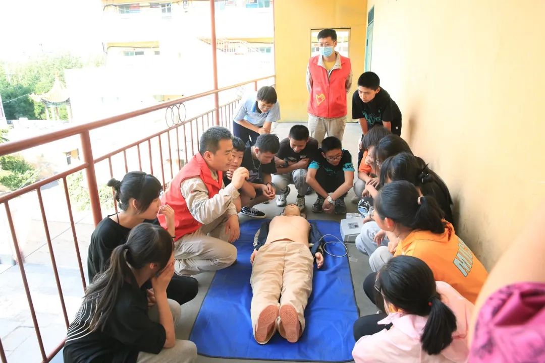 活動現(xiàn)場,青年志愿者給孩子們發(fā)放了安全環(huán)保宣傳手冊及宣傳單,給孩子們認真講解交通安全、消防滅火和生活中的安全防護知識,緊緊圍繞“遵守安全生產(chǎn)法 當好第一責任人”主題,為孩子們進行“面對面、零距離、互動式”宣講、普及、解答有關應急救援知識。借助橡皮人給孩子們培訓心肺復蘇急救知識,詳細講解操作流程和注意事項,并指導孩子們親自上手操作實踐,提升孩子們的應急防護能力。
