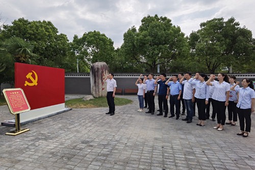 “我志愿加入中國共產(chǎn)黨,擁護黨的綱領(lǐng),遵守黨的章程,履行黨員義務(wù)……”在簡樸肅穆的總前委舊址前,全體黨員面向鮮紅的黨旗,舉起右拳、莊嚴(yán)宣誓,重溫入黨誓詞,鏗鏘有力的誓詞堅定表示著聽黨話、跟黨走、對黨忠誠的決心。
