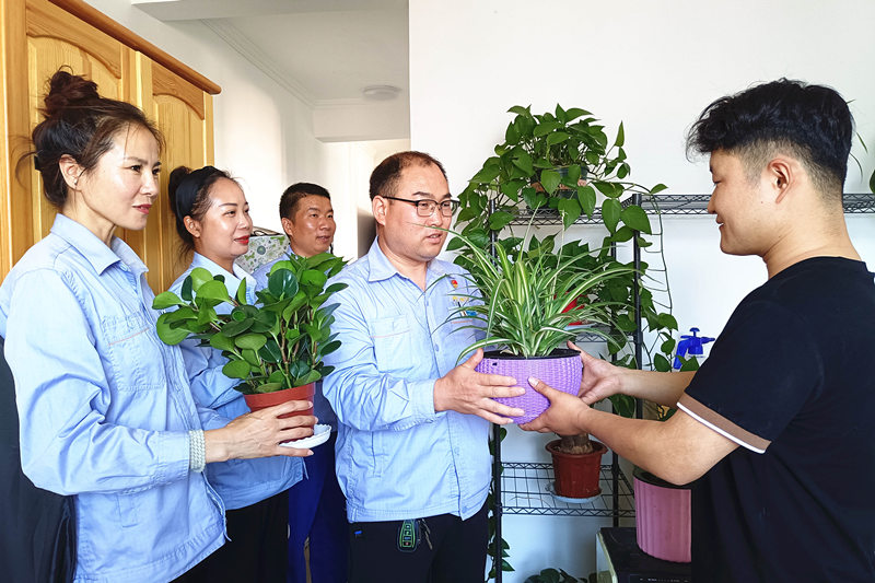 “小小的綠植,不僅能凈化空氣,還能緩解壓力,愉悅身心。”“我最喜歡花花草草,養(yǎng)了那么多的花草也會讓我有一種成就感......”。一盆盆充滿活力的綠植傳遞著公司對住宿員工的人文關(guān)懷,截至目前,20盆生機盎然的小綠植已經(jīng)全部“安家落戶”。