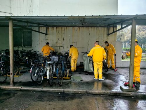 隨后,全體成員分為兩組分別對修舊利廢場地和自行車棚進行分類、歸整和清掃。大家手抬肩扛,分工明確,將各項物資和自行車有序定置擺放。