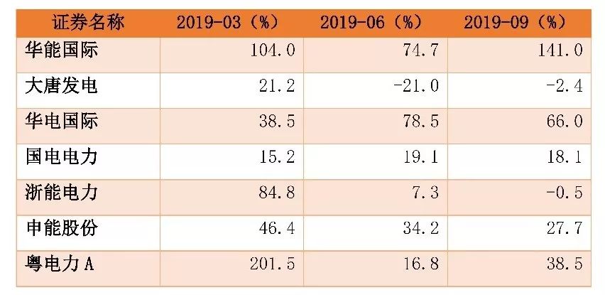 表1:火電行業(yè)主要企業(yè)凈利潤(rùn)增長(zhǎng)率