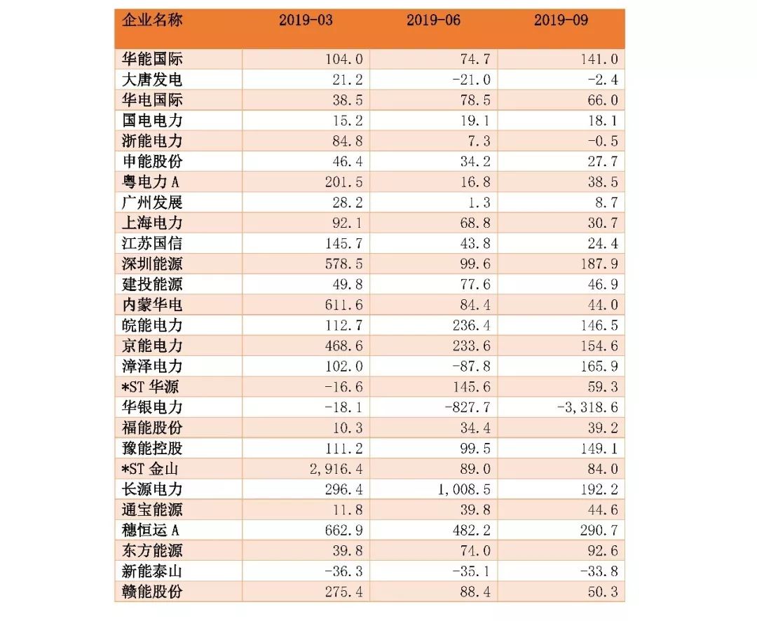 表3:火電行業(yè)今年以來(lái)凈利潤(rùn)同比變化(%)