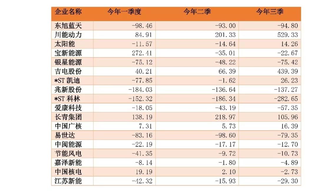表2:新能源行業(yè)今年以來(lái)凈利潤(rùn)同比變化(%)