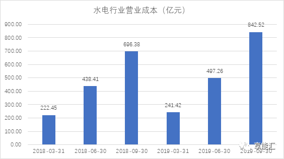 受季節(jié)性水流的影響,第三季度水電出力放緩,第三季度發(fā)電量同比增長(zhǎng)增速降低,增速為2.5%。第一季度和第二季度增速均保持在在十幾個(gè)百分點(diǎn)的增速。在行業(yè)收入方面,第三季度水電行業(yè)凈利潤(rùn)為414.21億元,其中歸屬于母公司的凈利潤(rùn)為365.47億元,歸屬母公司凈利潤(rùn)同比增長(zhǎng)率為11.6%。前三季度水電行業(yè)營(yíng)業(yè)成本為842.52億元,前三季度營(yíng)業(yè)成本同比增長(zhǎng)21%。