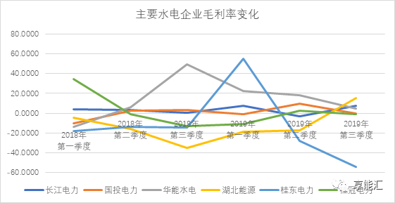 2019年前三季度水電公司長(zhǎng)江電力(18.010, 0.01, 0.06%)發(fā)電量增速為-2%、華能水電(4.360, 0.02, 0.46%)發(fā)電量增速為36%、桂冠電力(4.600, 0.01, 0.22%)發(fā)電量增速為-2%、國(guó)投電力(8.660, 0.04, 0.46%)發(fā)電量增長(zhǎng)為8%。受季節(jié)水量變化影響,長(zhǎng)江電力、華能水電、國(guó)投電力發(fā)電量增速均較前一季度有所下滑。受水量的影響,可以看到前幾大企業(yè)毛利率同比變化明顯。