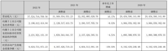 4月20日,深圳能源近日發(fā)布2022年年度報告,報告期內(nèi)公司實現(xiàn)營業(yè)收入37,524,716,709.56元,同比增長16.17%;歸屬于上市公司股東的凈利潤2,198,612,414.94元,同比下滑8.03%。
