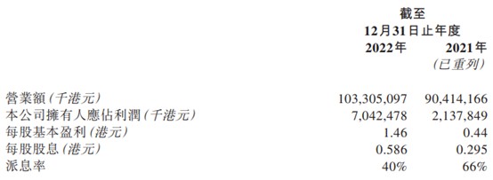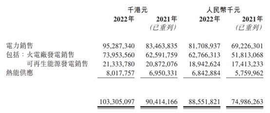 從基本面上來看,華潤電力是業(yè)內少有的,在2022年內實現(xiàn)收入和利潤均正向增長的企業(yè)。年內,公司實現(xiàn)營業(yè)收入1033.05億港元,同比增加14.3%,主要因火電不含稅平均上網電價同比上升20.2%,附屬電廠售電量同比增加4.1%;及附屬電廠不含稅平均售熱單價/售熱量同比增加13.8%/6.4%所驅動。其中,2022下半年,其收入同比增長11.1%,環(huán)比增長4.9%至529億港元。