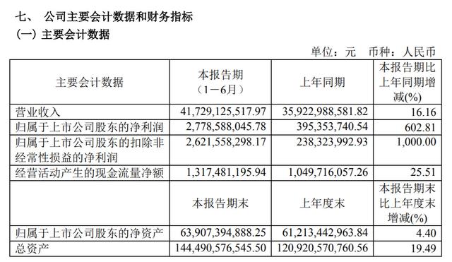 中新經(jīng)緯注意到,今年8月29日,浙能電力公布的半年報顯示,上半年實現(xiàn)營收417.29億元,同比增長16.16%;歸屬于上市公司股東的凈利潤27.79億元,同比增長602.81%。