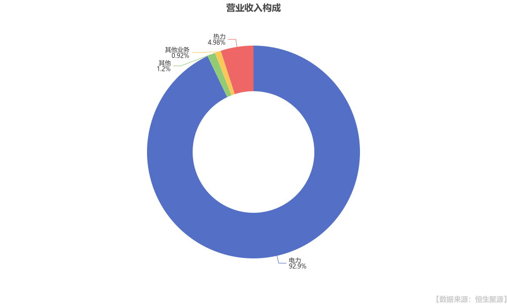 分產(chǎn)品來看,公司電力收入393.92億元,占比92.90%,同比增長13.89%;熱力收入21.09億元,占比4.97%,同比下降3.04%;其他收入5.10億元,占比1.20%,同比下降72.54%;其他業(yè)務(wù)收入3.91億元,占比0.92%