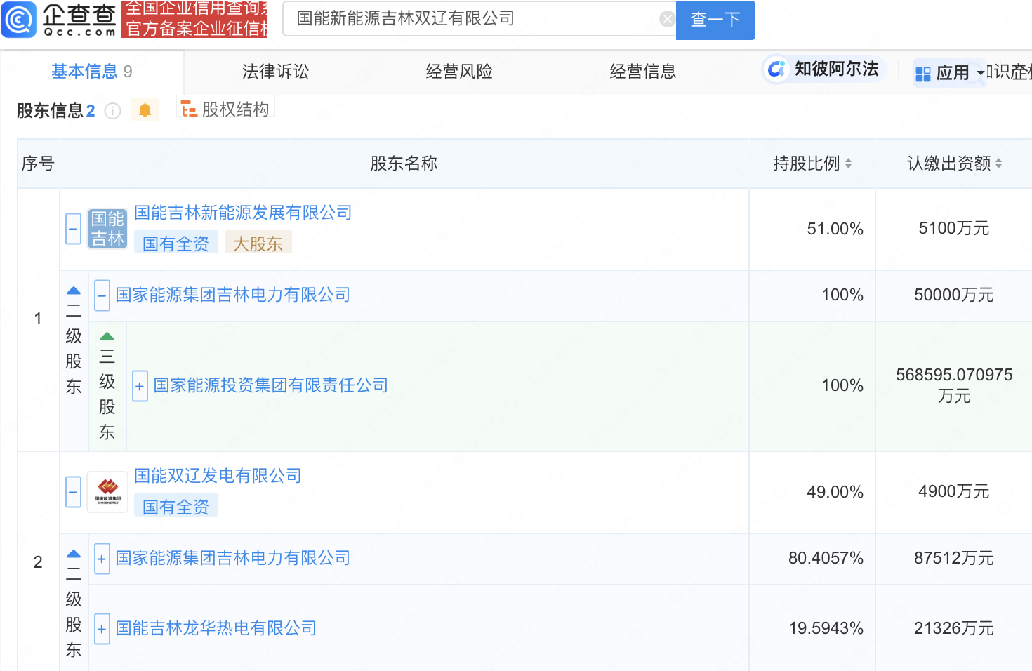 近日,國能新能源吉林雙遼有限公司成立,法定代表人為張弘權(quán),注冊資本1億人民幣,經(jīng)營范圍含新興能源技術(shù)研發(fā)、新能源原動設(shè)備制造、生物質(zhì)能技術(shù)服務(wù)等。企查查股權(quán)穿透顯示,該公司由國家能源投資集團(tuán)有限責(zé)任公司旗下國能吉林新能源發(fā)展有限公司、國能雙遼發(fā)電有限公司共同持股。