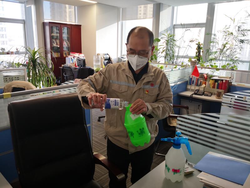 做好辦公區(qū)域的消毒工作,也成了王兆猛的日常。他是一個(gè)特別細(xì)致耐心的人,每天早晚各消毒殺菌一次,從未間斷。消毒的過程他也從不對(duì)付,包括每間辦公室的門把手他都要仔細(xì)擦拭一遍。防疫期間,他還與值班同志一起,認(rèn)真排查疫情信息,及時(shí)對(duì)各場(chǎng)站存在的防疫隱患進(jìn)行摸底,當(dāng)好領(lǐng)導(dǎo)的助手,積極協(xié)調(diào)解決防疫期間大家存在的困難。