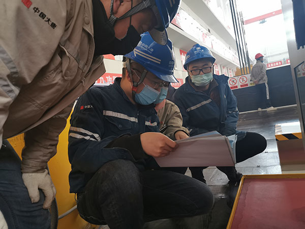 張博(左二)帶領(lǐng)QC科技參賽隊(duì)員進(jìn)行現(xiàn)場調(diào)速器控制原理學(xué)習(xí)