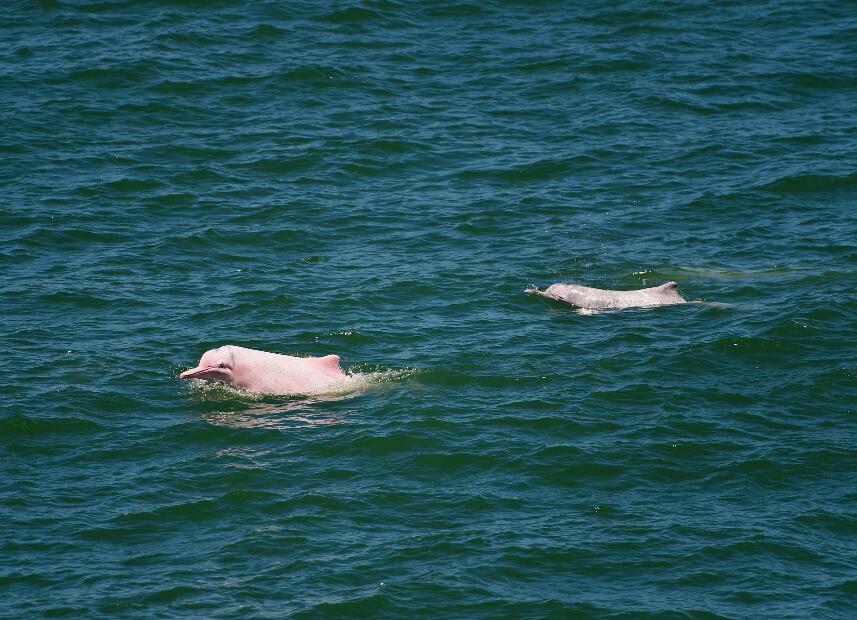 中廣核陽(yáng)江核電基地海域嬉戲的中華白海豚