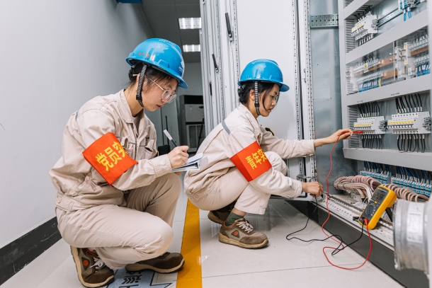 圖為黨員突擊隊(duì)正在測量DEH柜控制電源