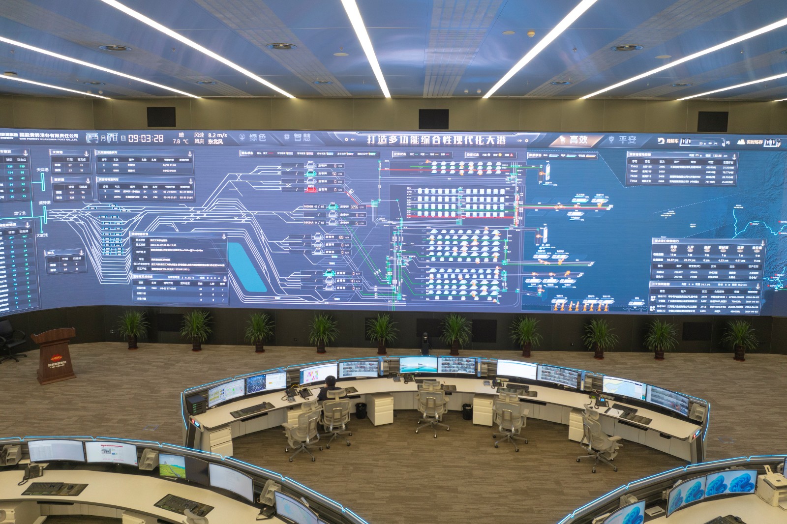 圖為黃驊港務生產(chǎn)調(diào)度大廳