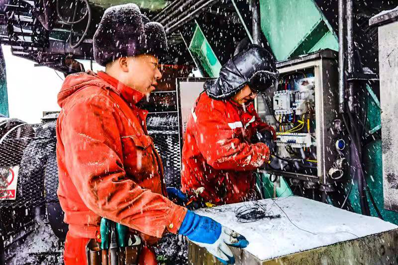 圖為國(guó)家能源集團(tuán)準(zhǔn)能集團(tuán)哈爾烏素露天煤礦的電工冒雪檢修設(shè)備