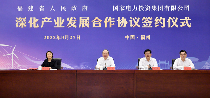 本網(wǎng)訊 9月27日,國(guó)家電投與福建省人民政府通過(guò)視頻方式簽署深化產(chǎn)業(yè)發(fā)展合作協(xié)議。福建省委書記、省人大常委會(huì)主任尹力,福建省委副書記、省長(zhǎng)趙龍,國(guó)家電投黨組書記、董事長(zhǎng)錢智民出席并見(jiàn)證簽約。福建省委常委、常務(wù)副省長(zhǎng)郭寧寧,國(guó)家電投黨組成員、副總經(jīng)理徐樹(shù)彪分別代表雙方簽署協(xié)議。福建省委常委、省委秘書長(zhǎng)吳偕林,國(guó)家電投黨組副書記、董事栗寶卿出席活動(dòng)。