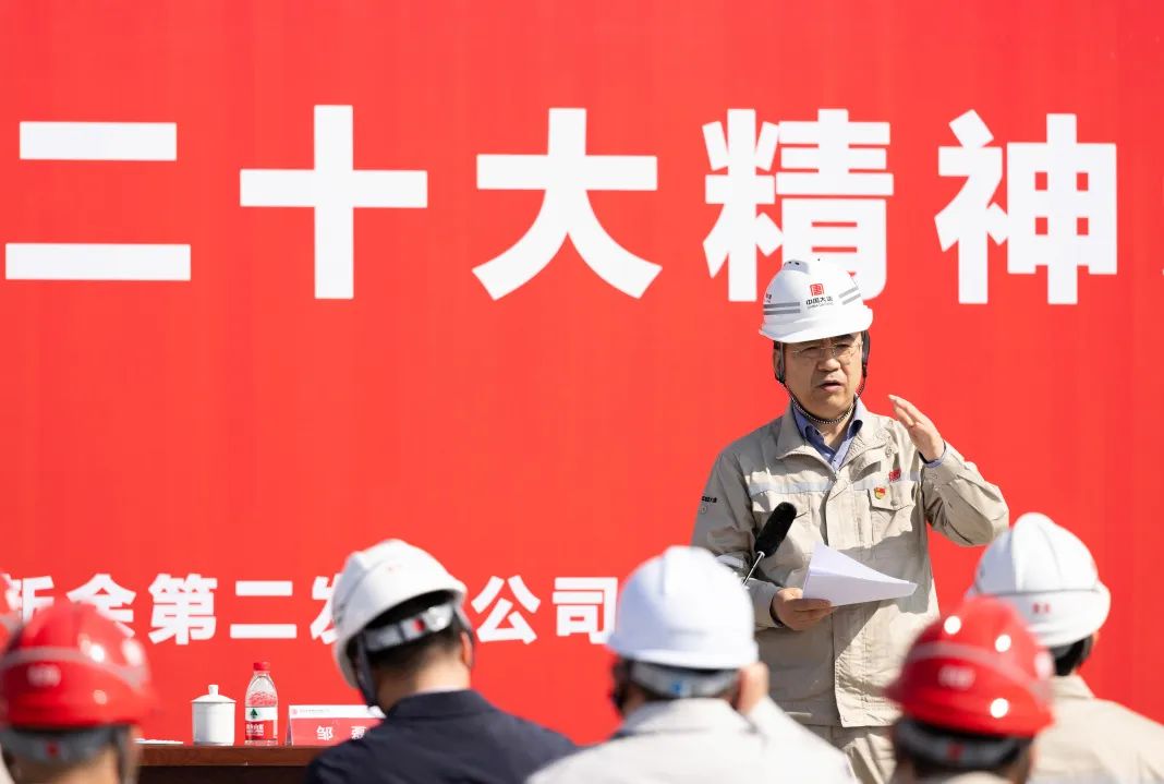 在工地現(xiàn)場的一片空地上,鄒磊與項(xiàng)目部干部職工、參與工程施工的建設(shè)和監(jiān)理單位職工面對面進(jìn)行交流,以鮮活的事例、通俗的語言、真切的情感對黨的二十大精神進(jìn)行了解讀闡釋,和大家一起共同學(xué)習(xí)了黨的二十大精神。鄒磊強(qiáng)調(diào),新余二期正值工程建設(shè)的關(guān)鍵時(shí)期,要切實(shí)抓好組織領(lǐng)導(dǎo)、宣傳宣講和學(xué)習(xí)培訓(xùn)工作,確保黨的二十大精神入腦入心。要用黨的二十大精神指導(dǎo)工程建設(shè)實(shí)踐,確保“兩不超、三個(gè)零”,做到“五嚴(yán)禁”,加快建設(shè)“四優(yōu)工程”,把新余二期建設(shè)成為人與自然和諧共生的低碳綠色轉(zhuǎn)型示范電廠,為江西省經(jīng)濟(jì)社會發(fā)展和社會進(jìn)步“提供清潔能源、點(diǎn)亮美好生活”。