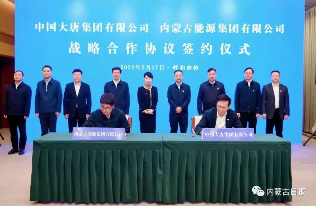 會見前,中國大唐集團有限公司分別與內(nèi)蒙古自治區(qū)人民政府、內(nèi)蒙古能源集團有限公司簽署戰(zhàn)略合作協(xié)議。王莉霞和鄒磊出席儀式并見證戰(zhàn)略合作協(xié)議簽約,共同為大唐內(nèi)蒙古能源開發(fā)有限公司揭牌。