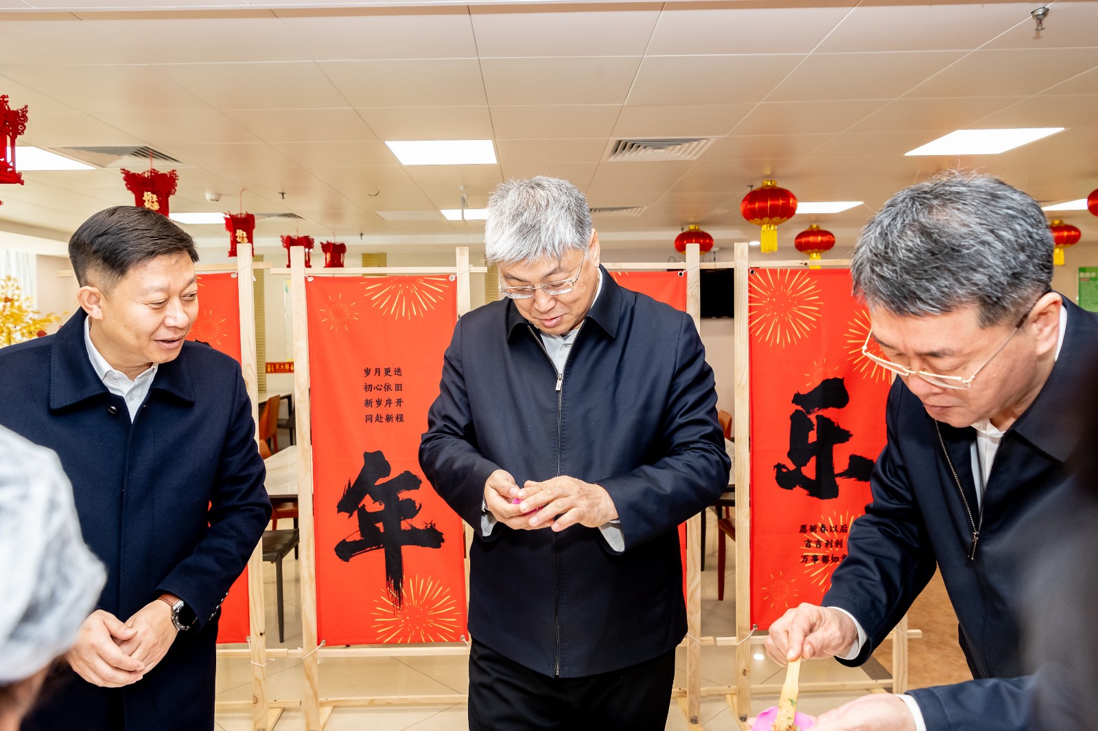 會后,劉國躍帶隊看望慰問集團生產(chǎn)運營協(xié)同調(diào)度指揮中心、新聞中心、電力營銷公司、銷售集團、化工工程、化工公司、國際公司、置業(yè)公司、鐵路裝備、數(shù)智科技、信息技術(shù)分公司、電力運行生產(chǎn)監(jiān)控中心等單位在崗值班的干部職工,并與置業(yè)公司員工一起為值班員工包餃子,送上新年祝福。