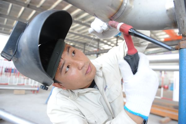 中核集團(tuán)全國勞模、大國工匠、核級焊工未曉朋在進(jìn)行焊接任務(wù)