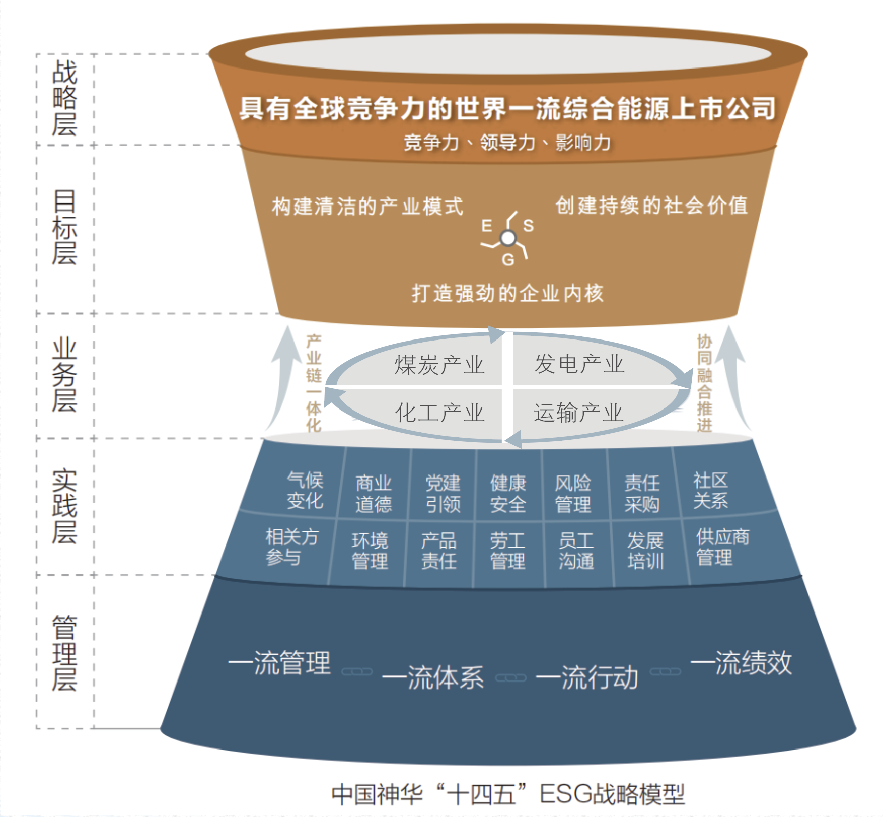 中國神華主動適應(yīng)ESG發(fā)展趨勢,不斷夯實ESG治理基礎(chǔ),加強(qiáng)ESG治理能力建設(shè),密切關(guān)注利益相關(guān)方訴求,繪制出ESG重要性議題矩陣,有針對性向外傳遞治理表現(xiàn),推動公司本部各部門和所屬企業(yè)將ESG理念和要求融入日常生產(chǎn)經(jīng)營管理中,持續(xù)增強(qiáng)企業(yè)發(fā)展韌性,為傳統(tǒng)能源行業(yè)開展ESG治理創(chuàng)新提供借鑒和參考。