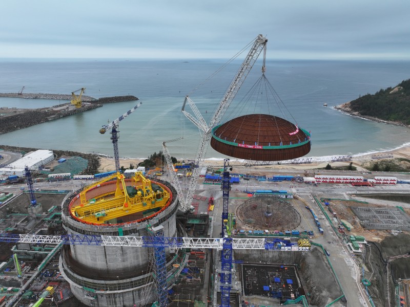 2024年,“華龍一號(hào)”中廣核廣東陸豐核電站5號(hào)機(jī)組穹頂?shù)跹b,耗時(shí)僅1小時(shí)8分鐘