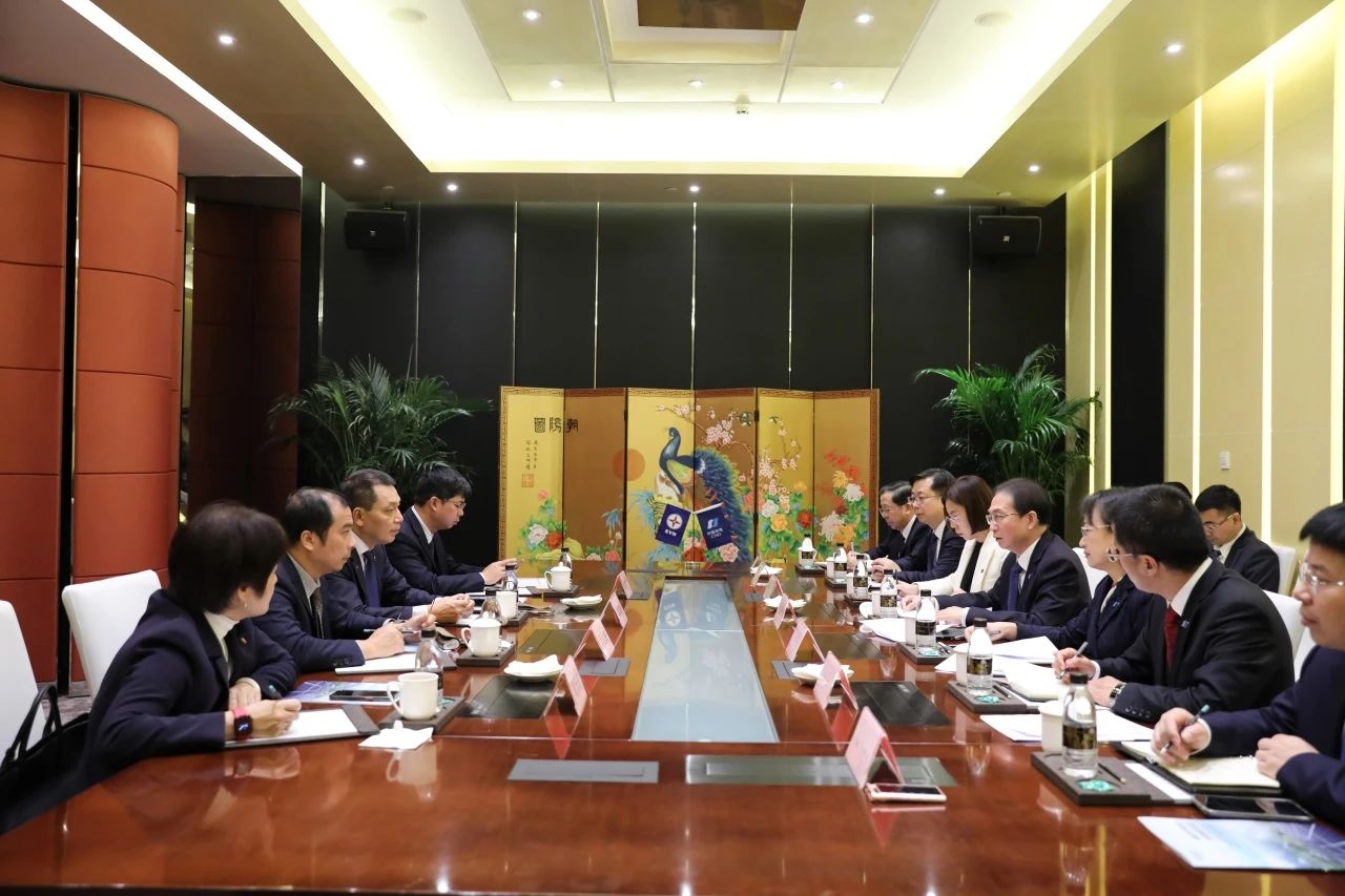 鄧黃安感謝中國華電長期以來對越南電力集團的支持和幫助,介紹了越南能源電力發(fā)展規(guī)劃。鄧黃安表示,雙方有著長期、良好的合作基礎,在項目建設、技術合作、人才培養(yǎng)等方面取得良好成效。近年來,隨著越南電力需求的增長,越南政府正推動電力行業(yè)改革,為企業(yè)提供了巨大的發(fā)展機遇和廣闊的市場空間。中國華電在能源電力領域具有成功項目經驗和先進技術優(yōu)勢,是值得信賴的合作伙伴。希望雙方聚焦提升能源安全保障和綠色低碳轉型,加強在風光電、氫能、儲能、CCUS、煤電節(jié)能降耗、超低排放與靈活性改造等方面的溝通交流,攜手為越南能源高質量可持續(xù)發(fā)展提供助力,實現(xiàn)互利共贏、共同發(fā)展。