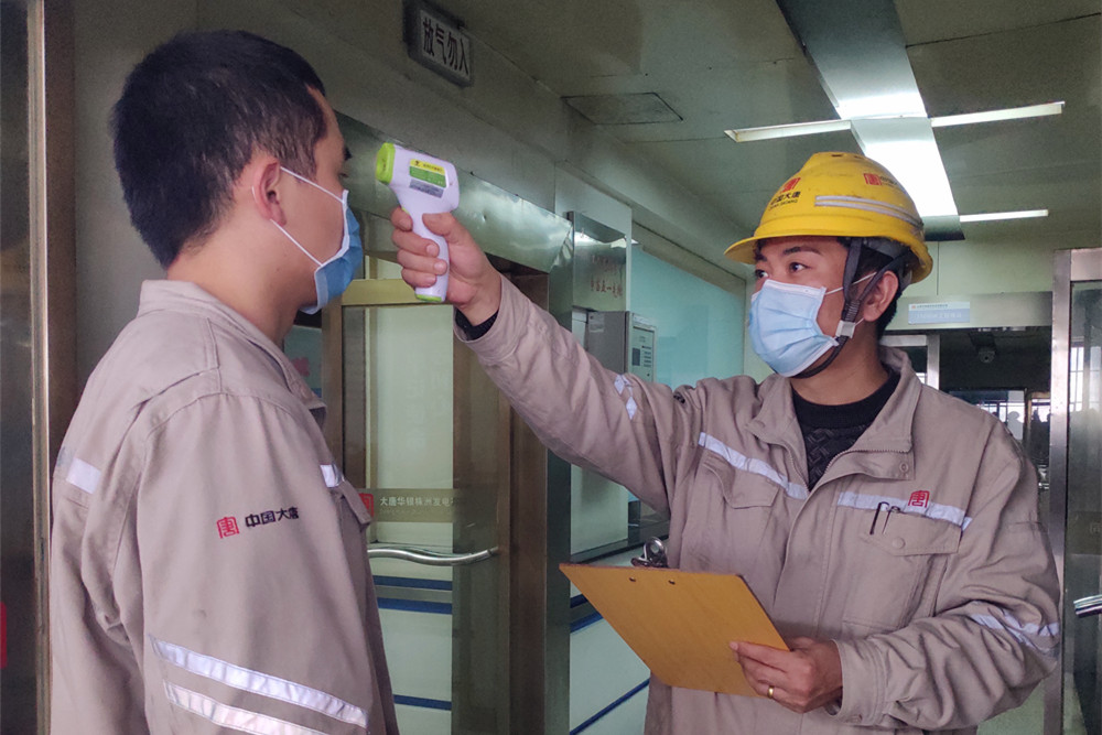檢測(cè)體溫 方劍學(xué)是大唐華銀株洲發(fā)電公司發(fā)電部的一名集控運(yùn)行主操,每天他上班都要經(jīng)過兩次體溫測(cè)量和佩戴口罩檢查。在疫情發(fā)生的第一時(shí)間,該公司迅速落實(shí)戰(zhàn)“疫”保電工作要求,實(shí)行生產(chǎn)區(qū)崗哨、集控室準(zhǔn)入制,凡是進(jìn)入公司區(qū)域的人員必須先接受檢查,做到外防輸入、內(nèi)防傳播,確保職工生命安全和機(jī)組發(fā)電安全。