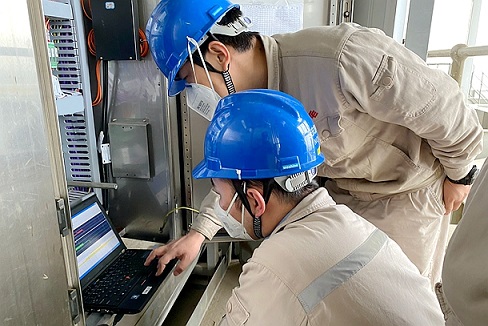 圖為該公司技術(shù)人員檢查總線設備通訊情況