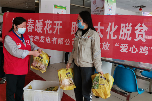 中國電力網(wǎng)訊 近日,大唐華銀株洲發(fā)電有限公司認購大唐集團公司定點扶貧縣——廣西自治區(qū)大化縣受疫情影響而滯銷的雞708只,并發(fā)放給員工。
