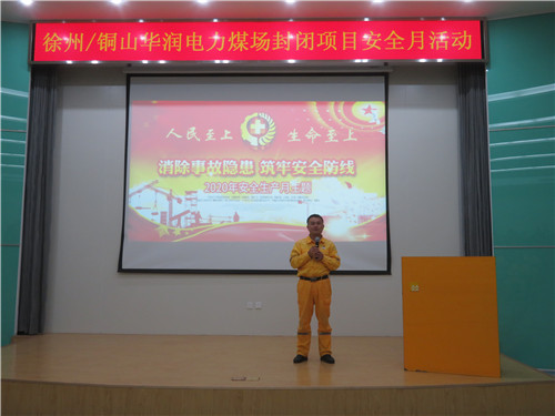 6月4日,徐州/銅山華潤電力有限公司(以下簡稱“公司”)煤場封閉項(xiàng)目安全生產(chǎn)月主題活動(dòng)在綜合樓一樓階梯教室舉行,公司技術(shù)總監(jiān)張峰、華潤電力江蘇大區(qū)EHS部毛俊杰、公司EHS部部長杜長明、技術(shù)部副部長張建華等人到場參加。