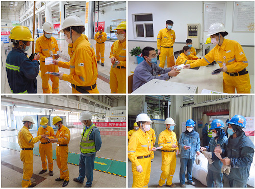 中國電力網(wǎng)訊 為落實好2020年“安全生產(chǎn)月”活動要求,普及安全知識,強化安全宣傳教育,增強員工安全責任和防范意識,6月10日上午,徐州/銅山華潤電力有限公司(以下簡稱“公司”)黨委委員、辦公室主任王邱艷,公司安委辦主任、EHS部部長杜長明牽頭組織進行“送安全生產(chǎn)月宣傳手冊到一線”活動。同時為做好現(xiàn)場工作人員防暑降溫工作,公司食堂精心準備了六桶綠豆湯,送到公司211C檢修現(xiàn)場、煤場封閉現(xiàn)場一線。