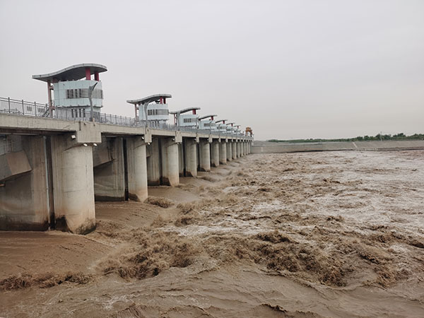 中國電力網(wǎng)訊 今年7月,黃河上游來水頗豐,日均流量超過2000m³/s。內(nèi)蒙古大唐國際海勃灣水利樞紐開發(fā)有限公司嚴(yán)格執(zhí)行水庫調(diào)令,聯(lián)合黃河海勃灣水利樞紐管理局集中開展清淤排沙工作。在排沙調(diào)度運用現(xiàn)場,該公司排沙洞和泄洪閘門全開,構(gòu)成了群龍并發(fā)、巨浪翻滾的壯闊場面。