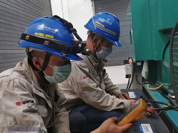 工作人員測量柴油發(fā)電機蓄電池電壓