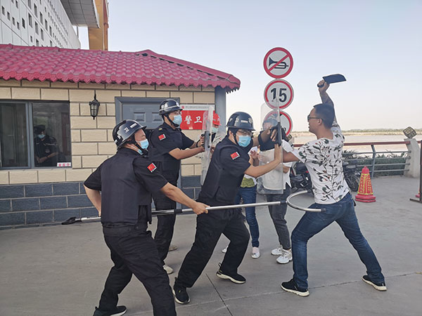 本次演練根據(jù)企業(yè)規(guī)模情況、突發(fā)事件人數(shù)及影響范圍,重點圍繞10人以下的突發(fā)性群體事件開展,參演職工由治安保衛(wèi)人員及公司分管安全、后勤及綜合服務保障等人員組成,現(xiàn)場模擬了一行社會團伙在廠區(qū)門口處堵截公務車輛通行、尋釁滋事、聚眾斗毆的場景,現(xiàn)場職工和治安保衛(wèi)人員通過啟動應急預案、信息傳達、布置警戒、匯報上級、召集會議、制定措施到落實執(zhí)行,緊張有序地完成了演練任務。過程中,首先對事情相關人員進行勸說,經過正當渠道和方法提供處理途徑,再對聚眾鬧事負責人單獨分開協(xié)商,最后對混亂局面進行控制。通過對可能突發(fā)的各種情形進行可靠控制,有效保障了生產辦公秩序正常進行。