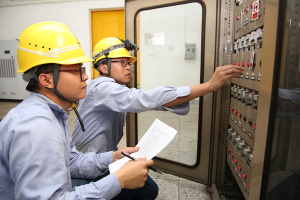 集控室里,還活躍著一批近幾年新進廠的集控小年輕。今年剛?cè)霃S的新員工肖煜亮放棄了假日,正在向師傅請教問題,對他來說假日也是他學(xué)習(xí)的好時光。2017年進廠的張濤和2018年進廠的龔家龍則跑到了380伏配電室,嚴格按照唱票復(fù)誦制,熟練的進行電氣停電操作。即便是在黃金周,他們也和前輩們一樣,不愿休息一天,只為盡心盡力保機組安全。