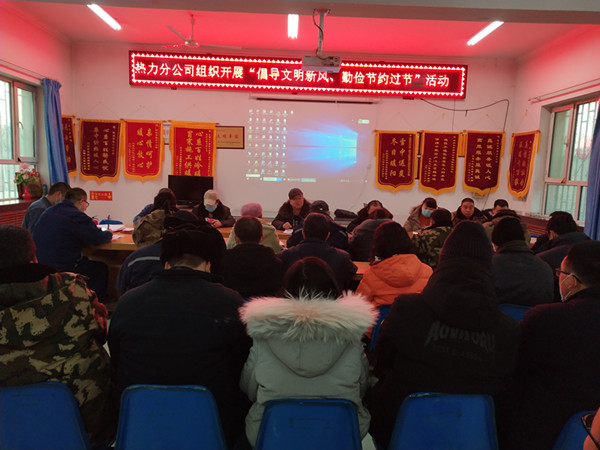 中國電力網(wǎng)訊 為貫徹落實(shí)習(xí)近平總書記關(guān)于厲行節(jié)約、反對浪費(fèi)特別是制止餐飲浪費(fèi)行為的重要指示精神。2月9日,新疆兵團(tuán)一師電力阿拉爾熱力分公司組織開展“倡導(dǎo)文明新風(fēng)、勤儉節(jié)約過節(jié)”活動。